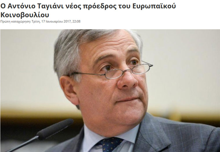 Αντιδράσεις έχει προκαλέσει η στάση του νέου προέδρου του Ευρωπαϊκού Κοινοβουλίου Αντόνιο Ταγιάνι, ο οποίος αποκαλεί τα Σκόπια «Μακεδονία».