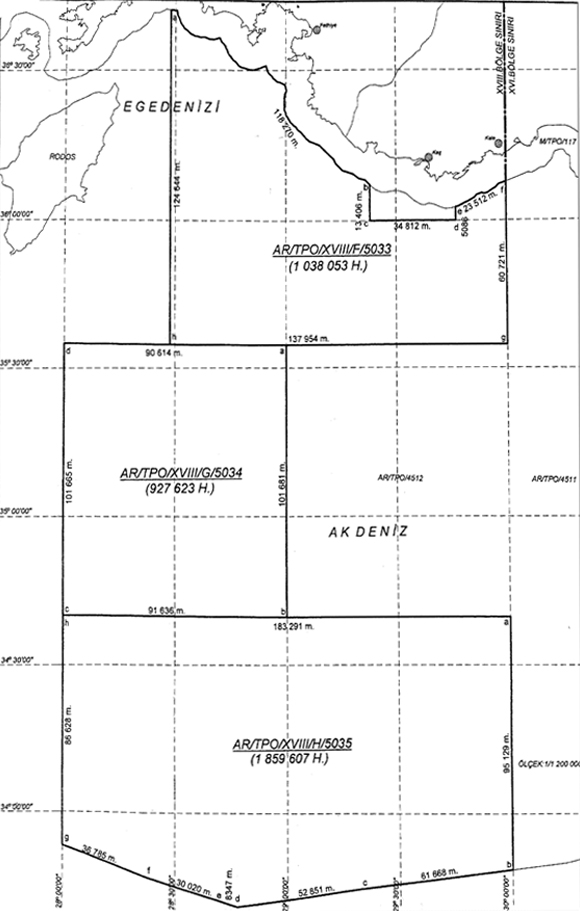 Οι άδειες που παραχώρησε η κυβέρνηση της Τουρκίας ανήκουν πλέον στην ανώνυμη κρατική εταιρεία εκμετάλλευσης υδρογονανθράκων. Πρόκειται για έξι (6) χωριστά διατάγματα που φέρουν ως χαρακτηριστικό περιοχές της Ανατολικής Μεσογείου και του Αιγαίου. Τα διατάγματα αυτά είναι :