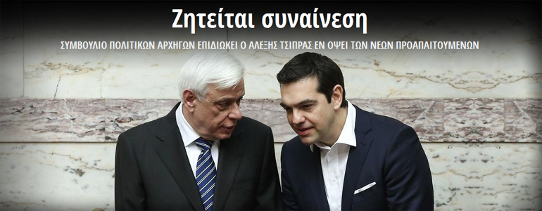 - για να δοθεί το μήνυμα προς την Ευρώπη, καθώς η διαπραγμάτευση είναι ακόμα ανοιχτή σε ιδιαίτερα επώδυνα μέτρα, ότι η αντιπολίτευση προσφέρει τη συναίνεσή της στην κυβέρνηση -πρόκειται για μήνυμα που θα φέρει σε μεγαλύτερη θέση ισχύος την κυβέρνηση