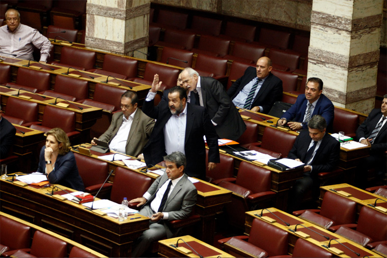 Ο αναπληρωτής υπουργός βρισκόταν στο βήμα παραθέτοντας επιχειρήματα προκειμένου να απαντήσει σε ομιλία της βουλευτή του ΠΑΣΟΚ Εύης Χριστοφιλοπούλου για τo Eθνικό Σύστημα Υγείας.