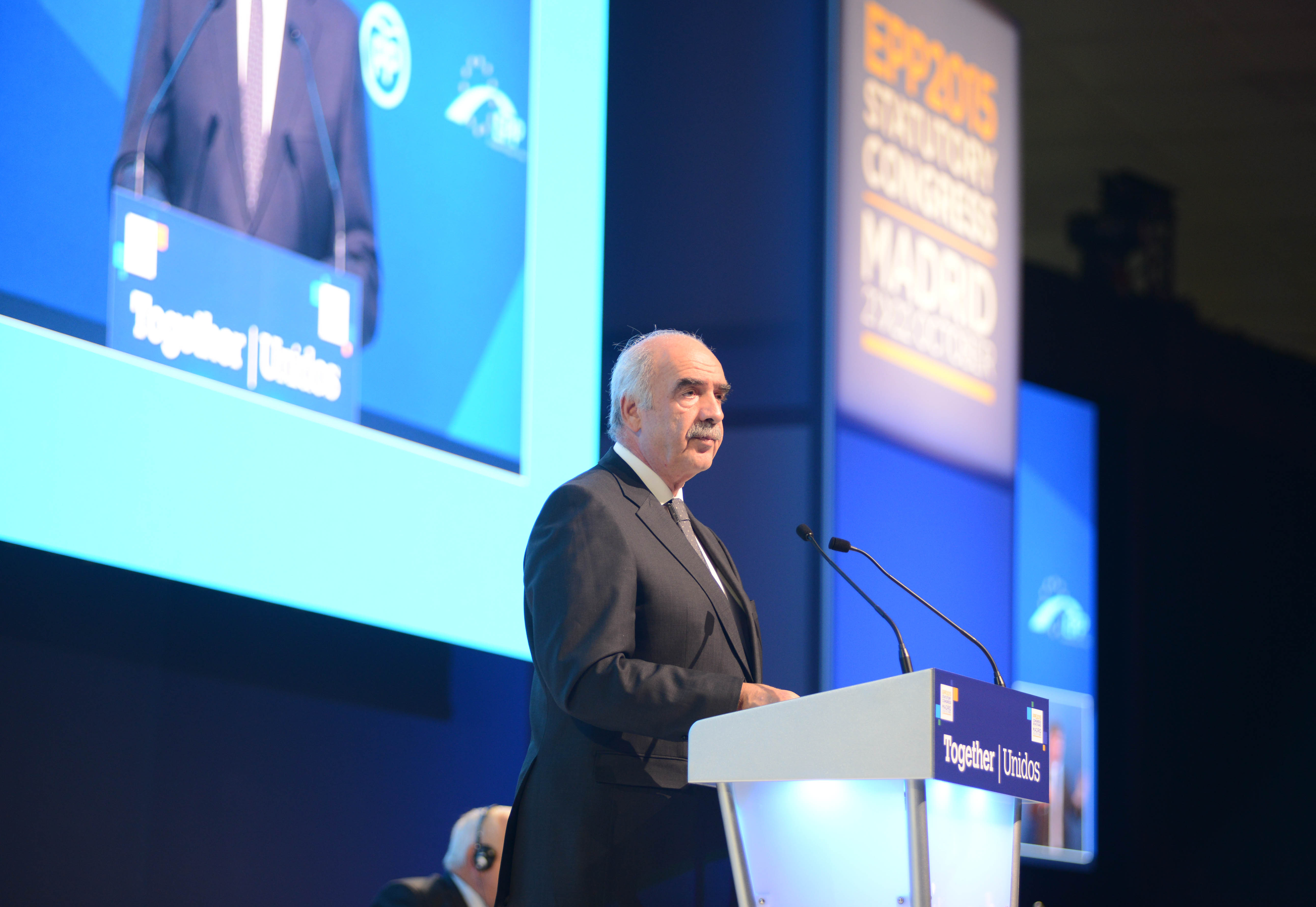 Περισσότερη αλληλεγγύη για τους πρόσφυγες σε κοινοτικό επίπεδο και όχι επικρίσεις προς την Ελλάδα και τις χώρες που αντιμετωπίζουν τα μεγάλα κύματα των προσφυγικών και μεταναστευτικών ροών ζήτησε από την Ευρώπη ο πρόεδρος της ΝΔ Βαγγέλης Μεϊμαράκης κατά την ομιλία του στο τακτικό συνέδριο του Ευρωπαϊκού Λαϊκού Κόμματος στη Μαδρίτη.