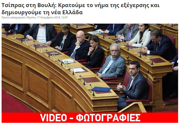 «Δεν ήρθε στη Βουλή για να τιμήσει το Πολυτεχνείο, αλλά για να ζητήσει άλλοθι για τους τεμενάδες που έκανε επί δύο ημέρες στον Ομπάμα και στην αμερικανική πολιτική. Ήρθε ως παραχαράκτης για να αλλοιώσει το μήνυμα του Πολυτεχνείου, να διορθώσει την εικόνα του υπουργικού συμβουλίου να χειροκροτεί μαζί με τον Γλύξμπουργκ τις δράσεις του ΝΑΤΟ και των δυνάμεων που στήριξαν τη χούντα στην Ελλάδα» είπε χαρακτηριστικά.