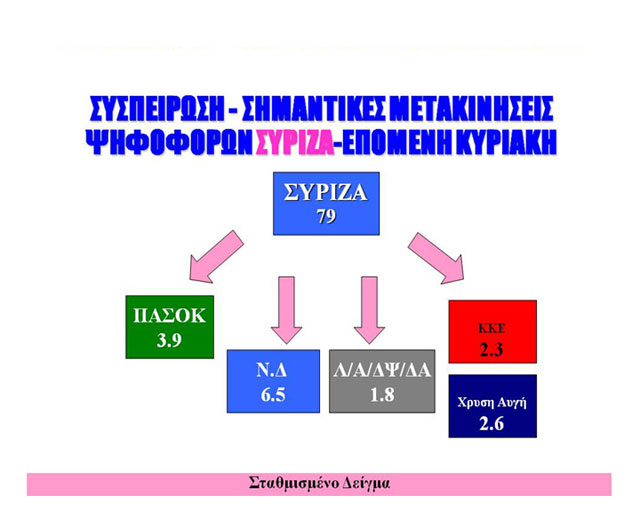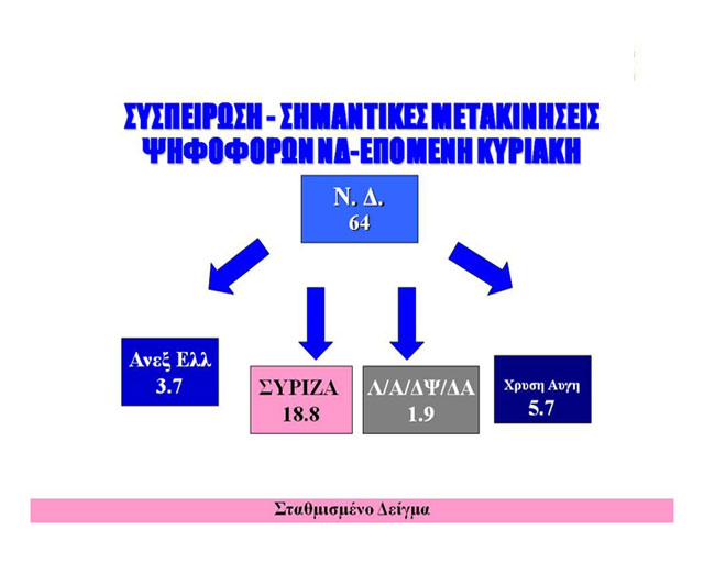 Επίσης, όπως και στην περίπτωση της ΝΔ, παρατηρείται ένα μεγάλο ποσοστό του να διαρρέεται προς τη ΝΔ, ενώ μικρότερα προς το ΠΑΣΟΚ και το ΚΚΕ.