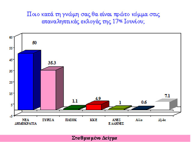 Λαμβάνοντας υπ’ όψιν το μεγάλο δείγμα, εύκολα κάποιος παρατηρεί την ολική ανατροπή. Με 29,1% πρώτος έρχεται ο Αλέξης Τσίπρας, δεύτερος ο «Κανένας» με 15,7%, τρίτος ο Αντώνης Σαμαράς (13,8 %), τέταρτος ο Ευάγγελος Βενιζέλος (10,8%) και πέμπτος ο πρόεδρος των Ανεξάρτητων Ελλήνων, Πάνος Καμμένος (6,7%).