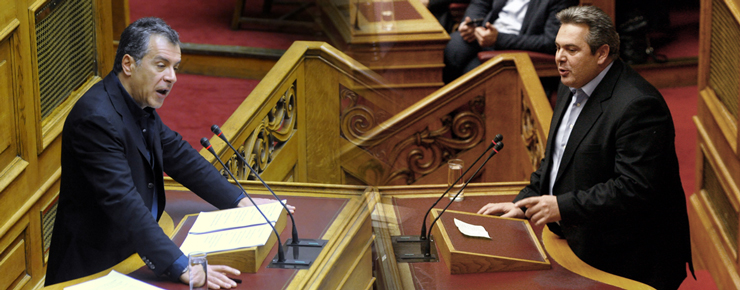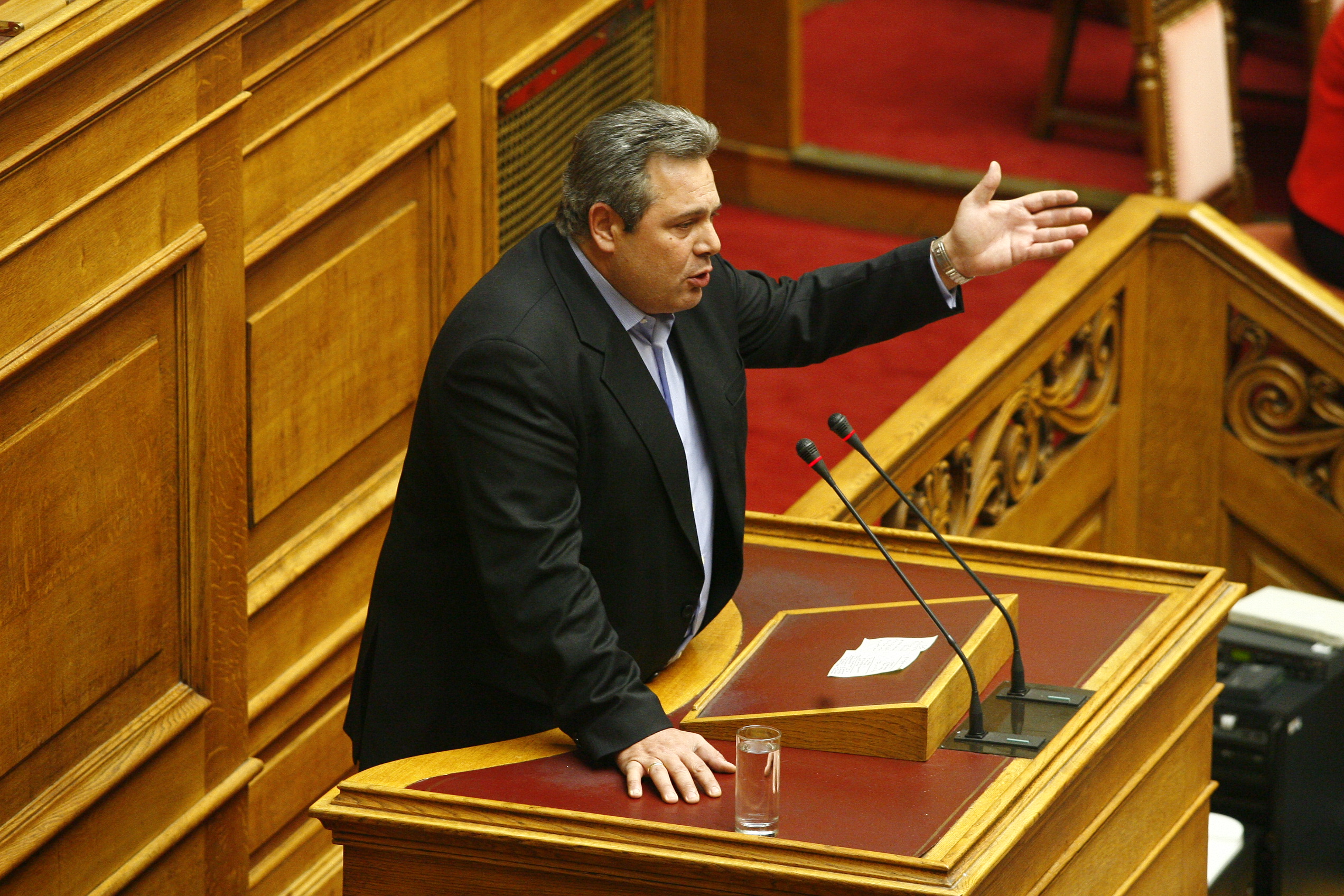 Η αποστροφή του κ. Καμμένου προκάλεσε τη σφοδρή αντίδραση του Σταύρου Θεοδωράκη, ο οποίος επανήλθε στην αίθουσα του κοινοβουλίου, από την οποία είχε αποχωρήσει τη στιγμή που στο βήμα ανέβηκε ο πρόεδρος των ΑΝ.ΕΛ.