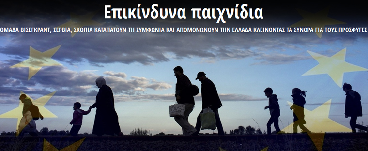 Την ώρα που οι εικόνες από την Ελλάδα με τους δεκάδες χιλιάδες εγκλωβισμένους πρόσφυγες και μετανάστες κάνουν τον γύρο του κόσμου, κράτη-μέλη της Ε.Ε., το ένα μετά το άλλο, αυτονομούνται «πραξικοπηματικά» αδιαφορώντας για τις αποφάσεις της Συνόδου Κορυφής και για τις συνέπειες που εξελίσσονται σε ένα επικίνδυνο ντόμινο, εξαπλώνοντας το χάος στην Ε.Ε. και απειλώντας με διάλυση το ευρωπαϊκό οικοδόμημα.