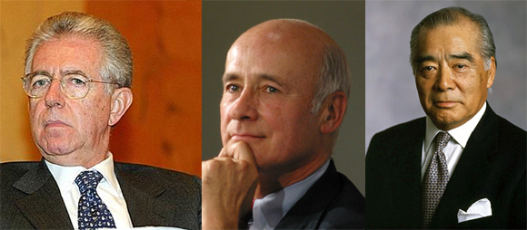 H σημερινή ηγεσία της Τριμερούς: Από αριστερά: Mario Monti (Ευρώπη) Josesh S. Nye Jr (HΠΑ) και Υotaro Kobayashi (Ειρηνικός-Ασία)