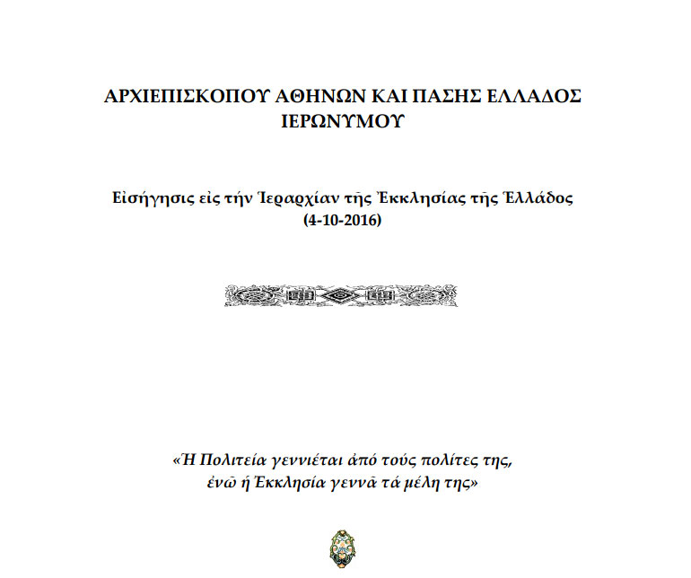 Αυτά τόνισε, μεταξύ άλλων, ο Μακαριότατος Αρχιεπίσκοπος Αθηνών και Πάσης Ελλάδος κ. Ιερώνυμος στο πλαίσιο της εισήγησής του ενώπιον του Σώματος της Ιεραρχίας της Εκκλησίας της Ελλάδος, παρουσιάζοντας τους προβληματισμούς του για το χθες, το σήμερα και το αύριο της Εκκλησίας μας.