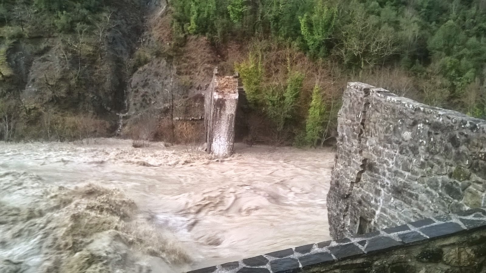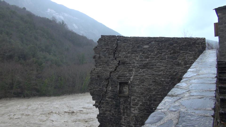Εν μέσω ισχυρής θύελλας το ιστορικό Γεφύρι της Πλάκας μετατράπηκε σ’ έναν σωρό από ερείπια. Το πέτρινο γεφύρι υποχώρησε λόγω των ισχυρών βροχοπτώσεων του τελευταίου 24ώρου, με τα ορμητικά νερά του Αράχθου να παρασέρνουν τα σπασμένα κομμάτια.