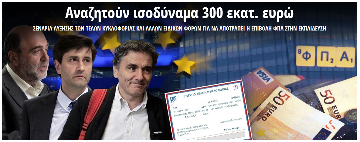 Διάφορες παρεμβάσεις σχετίζονται με αυξημένη φορολογική επιβάρυνση των πολιτών, είτε με νέους φόρους, π.χ. για τους αγρότες, τους γονείς με παιδιά σε φροντιστήρια, ιδιωτικά σχολεία κλπ. είτε με συνέχιση της εφαρμογής των ήδη γνωστών φόρων (π.χ. ΕΝΦΙΑ), που γίνονται περισσότερο επαχθείς, καθώς τα εισοδήματα πέφτουν. Σε γενικές γραμμές, τα φορολογικά μέτρα έχουν αποφασισθεί χωρίς να εκτιμάται το γεγονός αν μπορούν να εφαρμοστούν, πού μπορούν να εφαρμοστούν, τί επιπτώσεις θα έχουν αν εφαρμοστούν και, βεβαίως, τί επιπτώσεις θα έχουν εάν δεν εφαρμοστούν από όλους. Έτσι, για παράδειγμα, ένας επιχειρηματίας που πληρώνει τους φόρους και τις εισφορές του καθίσταται αυτομάτως λιγότερο ανταγωνιστικός σε σχέση με κάποιον άλλον του ίδιου κλάδου που φοροδιαφεύγει.