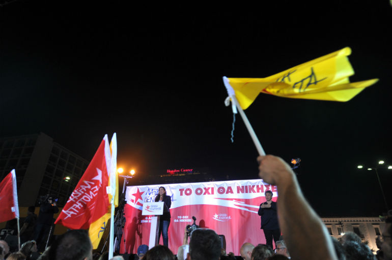 «Το “όχι” του λαού και της νεολαίας δεν ηττήθηκε. Όπως δεν ηττήθηκαν τα μεγάλα “όχι” στην εξάρτηση, την εκμετάλλευση και την αδικία που είπε ο λαός μας στην ιστορική του διαδρομή. Με τα “όχι” κρατηθήκαμε όρθιοι ως λαός και ως χώρα και όχι με τα “ναι” της υποταγής», ανέφερε το βράδυ της Δευτέρας ο επικεφαλής της Λαϊκής Ενότητας, Παναγιώτης Λαφαζάνης, κατά την η κεντρική προεκλογική συγκέντρωση του κόμματος, στην πλατεία Ομονοίας.