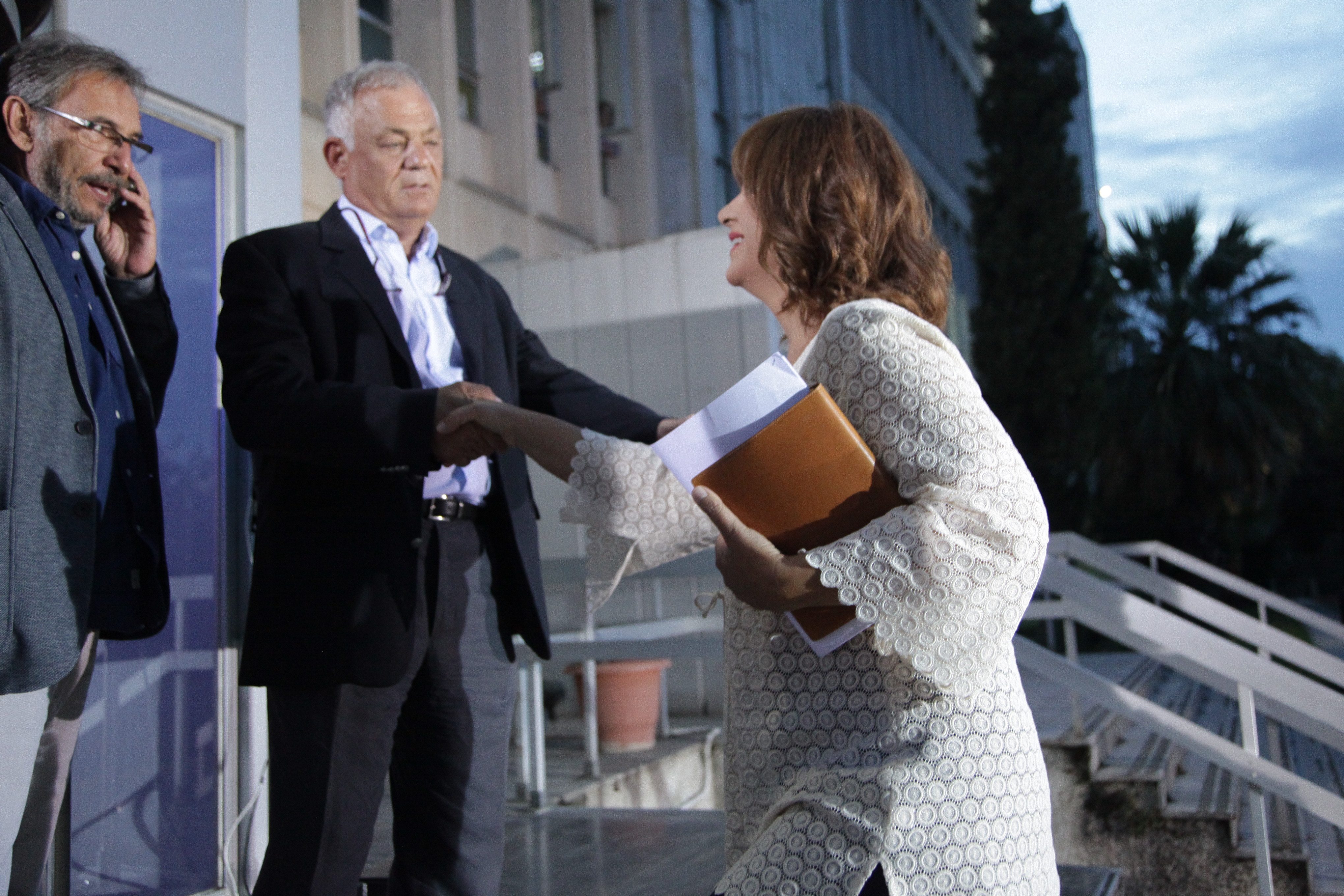 Η πρόεδρος του ΠΑΣΟΚ Φώφη Γεννηματά, με πολυπληθέστερη όλων συνοδεία πέρασε την είσοδο του Ραδιομεγάρου λίγο μετά τις 20.30.