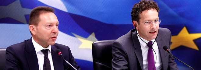 στο δημόσιο τομέα και τη φορολογική διοίκηση» τόνισε πάντως ο πρόεδρος του Eurogroup, προσθέτοντας «ελπίζουμε ότι θα αξιολογήσουμε την πορεία του προγράμματος στο Δεκέμβριο ή τον Ιανουάριο, περιλαμβανομένου του όποιου χρηματοδοτικού κενού στο τέλος του προγράμματος. Οι ανάγκες της Ελλάδας πέραν του επόμενου έτους θα αξιολογηθούν το 2014». Επανέλαβε δε ότι «το Eurogroup έχει δεσμευτεί για περαιτέρω βοήθεια, εφόσον η Ελλάδα πετυχαίνει τους στόχους της».