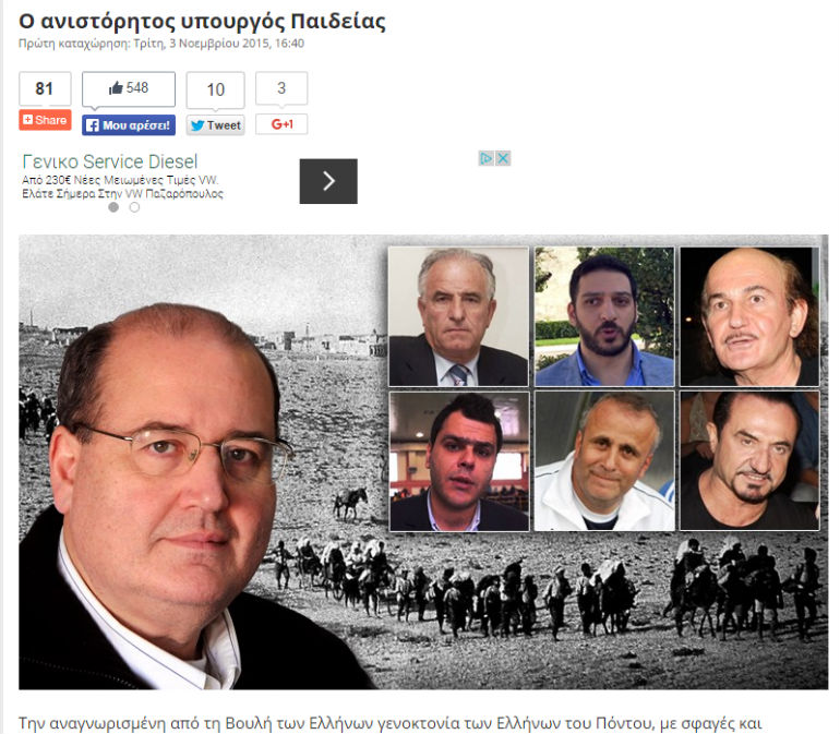 Η Διεθνής Συνομοσπονδία Ποντίων Ελλήνων διαμηνύει ότι «δεν θα ανεχθεί παραχάραξη της ιστορίας από κανέναν όσο ψηλά και αν βρίσκεται» και ζητά την παραίτηση του υπουργού αν δεν ανασκευάσει τις δηλώσεις του.