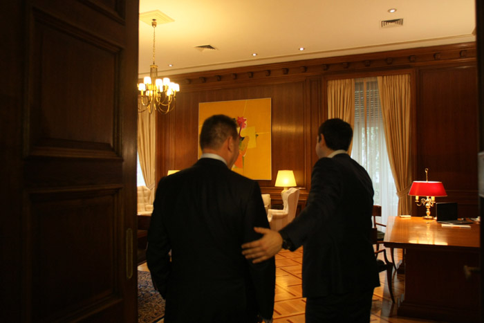 Μετά το πέρας της συνάντησης ο κ. Σρουενάρας δήλωσε ότι το ελληνικό τραπεζικό σύστημα και οι καταθέσεις είναι πλήρως διασφαλισμένα, προσθέτοντας ότι έλαβε τη διαβεβαίωση του πρωθυπουργού και του οικονομικού επιτελείου πως εργάζονται άοκνα για την επιτυχημένη έκβαση του Eurogroup της Δευτέρας.