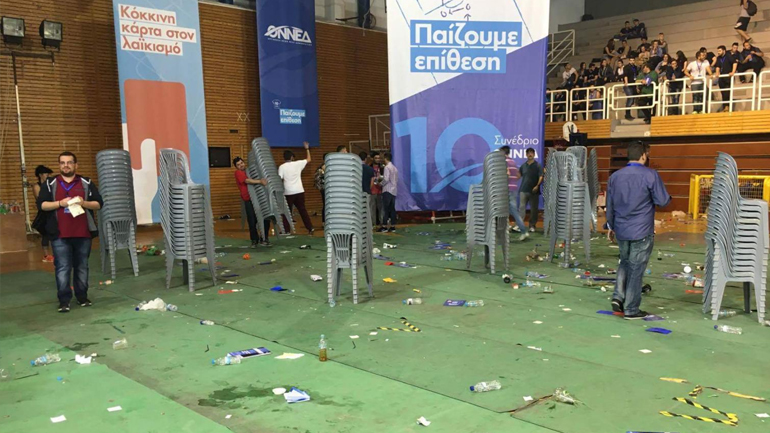 Ο πρόεδρος της οργανωτικής επιτροπής, Νίκος Λυσιγάκης, με παρέμβασή του από τη θέση του πάνελ των επισήμων, είπε: «Αυτοί οι οποίοι παίζουν μπάσκετ μέσα στον συνεδριακό χώρο δεν είναι ΟΝΝΕΔίτες. Δεν είναι αυτή η ΟΝΝΕΔ που ονειρευόμαστε». Αποτέλεσμα αυτής της παρέμβασης ήταν να κρυφτούν οι συγκεκριμένοι πίσω από ένα πανό φωνάζοντας συνθήματα της ΟΝΝΕΔ, ενώ μέσα στο επόμενο μισάωρο αποχώρησαν.