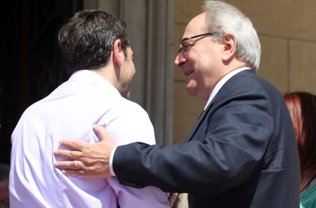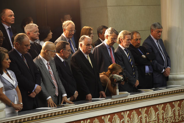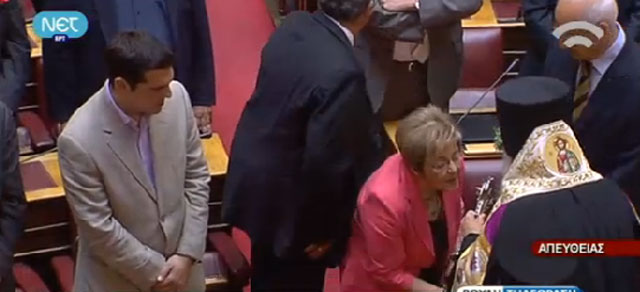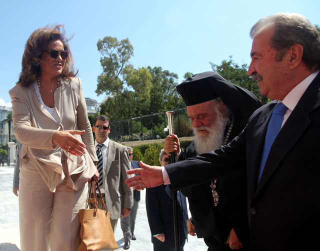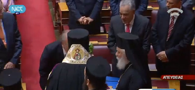 (Ο κ. Καμμένος ασπάστηκε τον σταυρό, ο κ. Τσίπρας δεν φίλησε τον σταυρό. Η κα Παπαρήγα διά χειραψίας χαιρέτισε τον Αρχιεπίσκοπο)