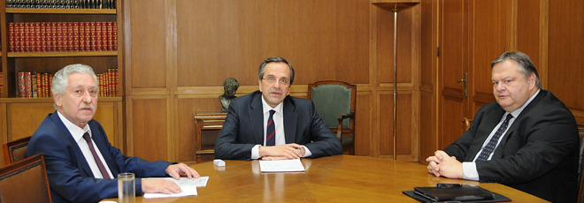 Η σύσκεψη της Τετάρτης στο Μαξίμου κράτησε πάνω από τρεις ώρες. Μετά την λήξη της οι κ.κ. Βενιζέλος και Κουβέλης με ταυτόσημες σχεδόν δηλώσεις από την έδρα των κομμάτων τους αναφέρθηκαν στις εκκρεμότητες αλλά και στο ότι την Πέμπτη το βράδυ θα έχει καταλήξει το όλο θέμα.