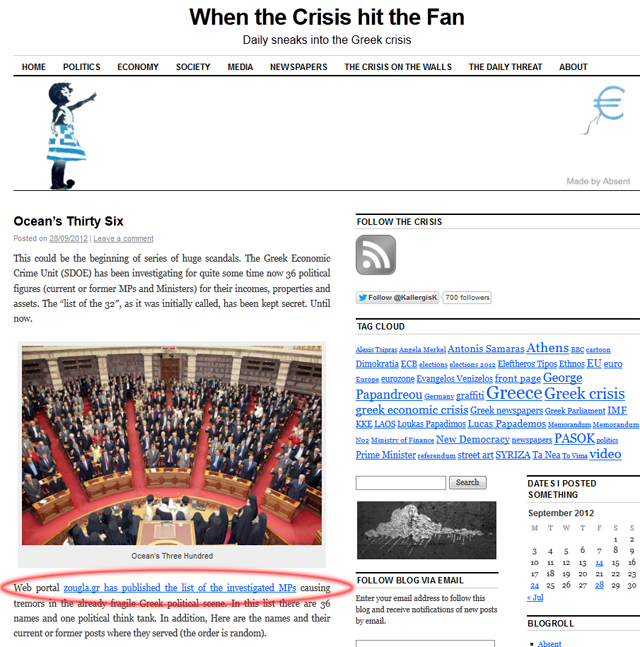 Πολιτικό πάταγο έχει προκαλέσει η δημοσιοποίηση από τη zougla.gr της αυθεντικής λίστας με τα 36 ονόματα εκπροσώπων του Κοινοβουλίου που ερευνώνται από το ΣΔΟΕ.
