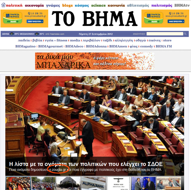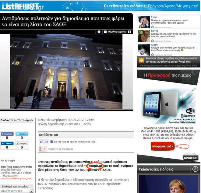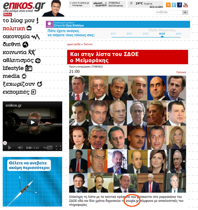 Τα μεγαλύτερα Μ.Μ.Ε., στην πλειονότητά τους, φιλοξένησαν την αποκάλυψη της zougla.gr στις πρώτες σελίδες των ηλεκτρονικών τους εκδόσεων και στα έντυπα.