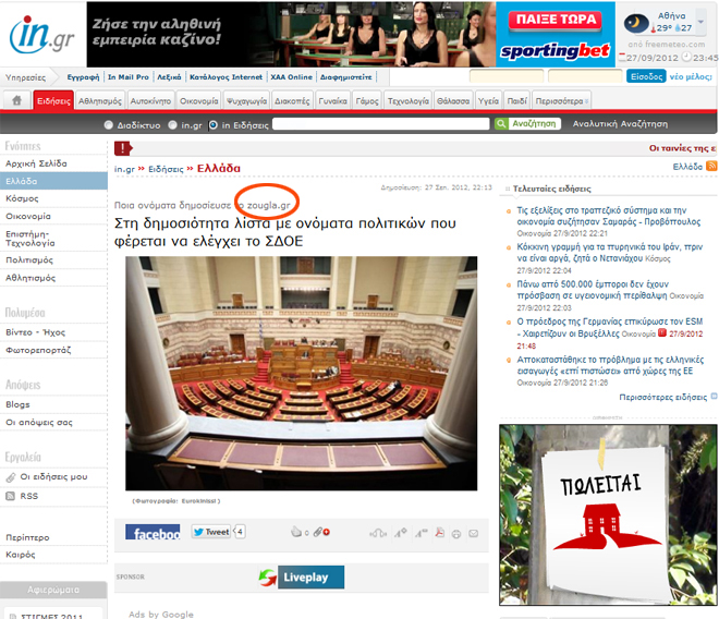Eυρεία αναπαραγωγή από εφημερίδες, sites, blog