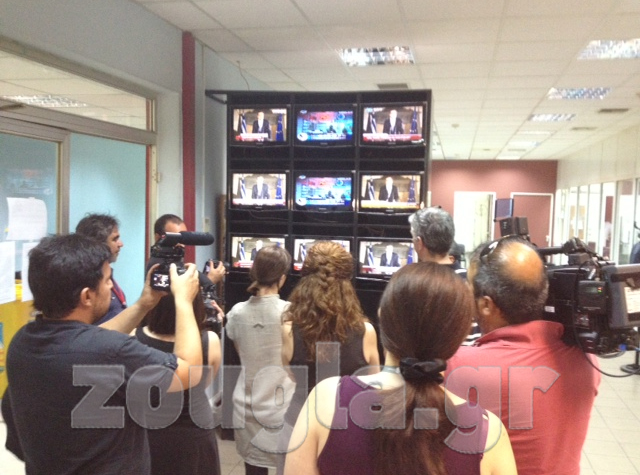 (Oι εργαζόμενοι στην ΕΡΤ παρακολουθούν το διάγγελμα Σαμαρά)