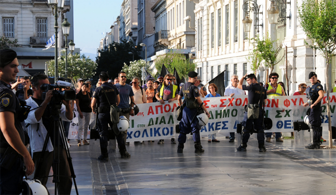 Στο Σύνταγμα συγκεντρώθηκαν υπάλληλοι των οργανισμών τοπικής αυτοδιοίκησης, εκπαιδευτικοί και μέλη του ΠΑΜΕ, ενώ πριν από λίγο έφθασε και πορεία σχολικών φυλάκων που είχαν πραγματοποιήσει προηγουμένως συγκέντρωση στην οδό Αιόλου.
