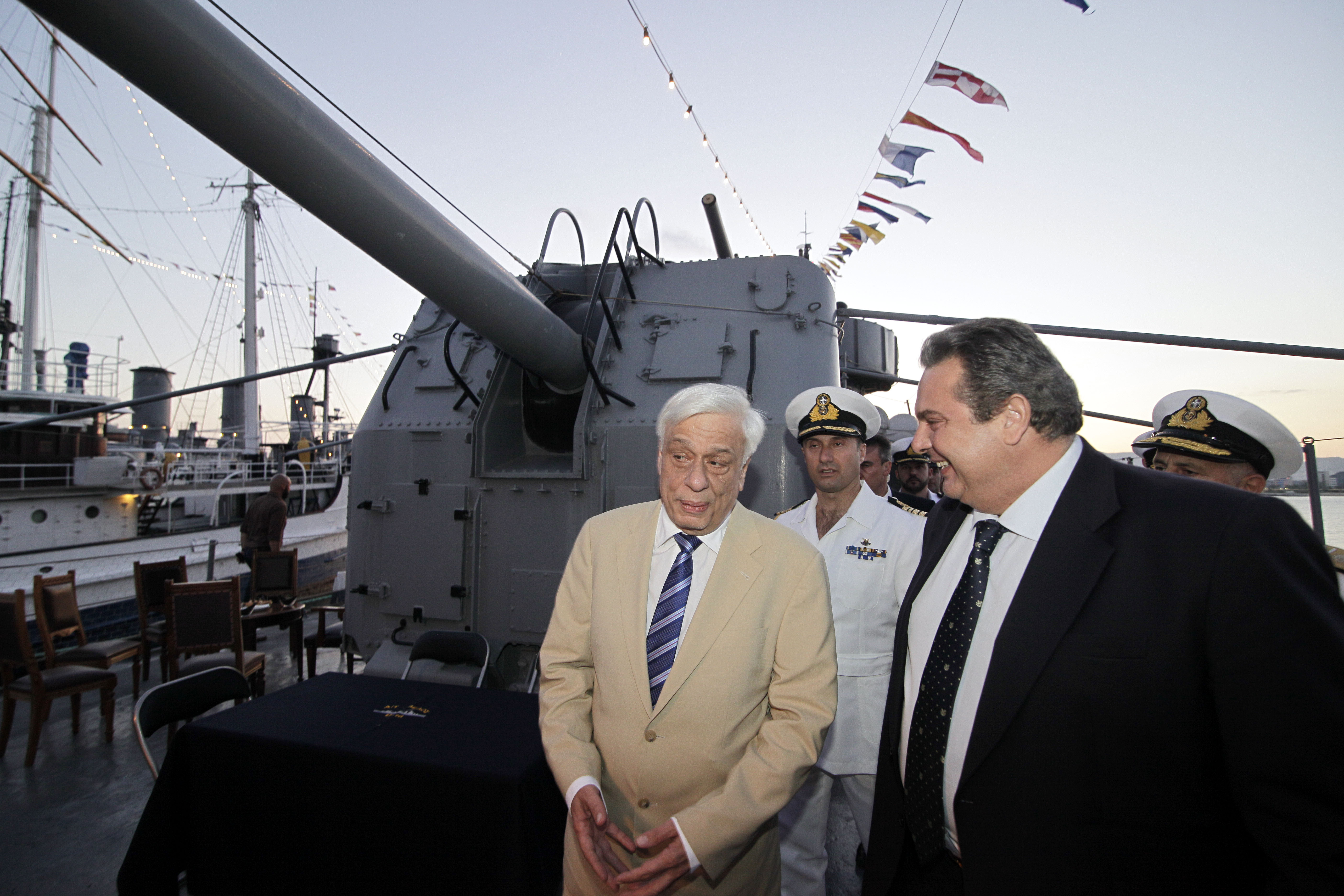 Το παρών στον εορτασμό του κινήματος πολεμικού Α/Τ «ΒΕΛΟΣ» στη Μαρίνα Φλοίσβου έδωσαν το βράδυ της Δευτέρας ο Πρόεδρος της Δημοκρατίας Προκόπης Παυλόπουλος και ο υπουργός Άμυνας Πάνος Καμμένος.