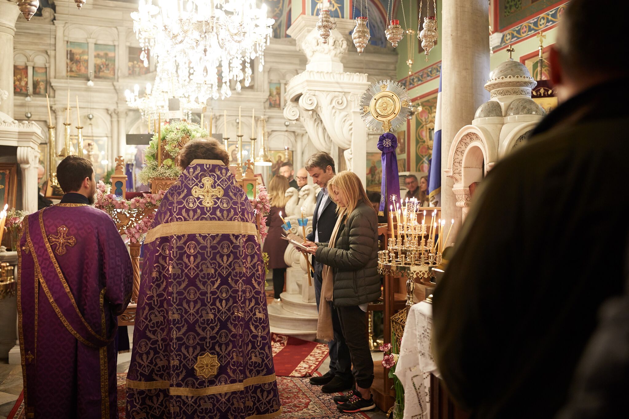 Ο Πρόεδρος της Νέας Δημοκρατίας, κ. Κυριάκος Μητσοτάκης παρακολούθησε χθες, Μεγάλη Παρασκευή, την Ακολουθία του Επιταφίου στην εκκλησία της Αγίας Τριάδος, στο χωριό Καρδιανή της Τήνου.