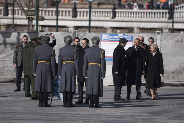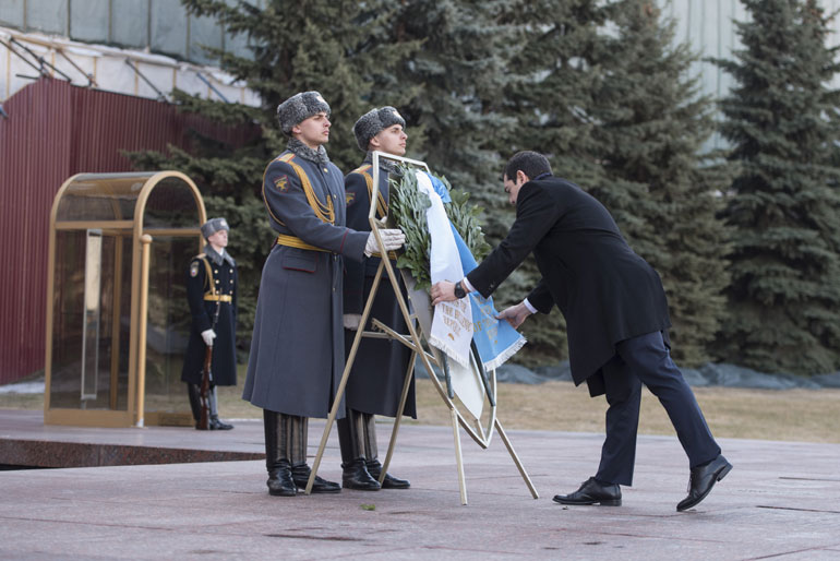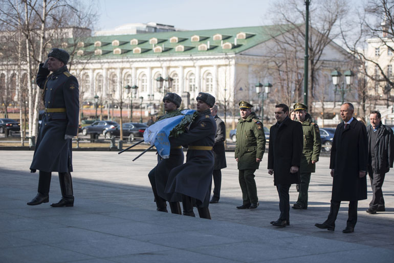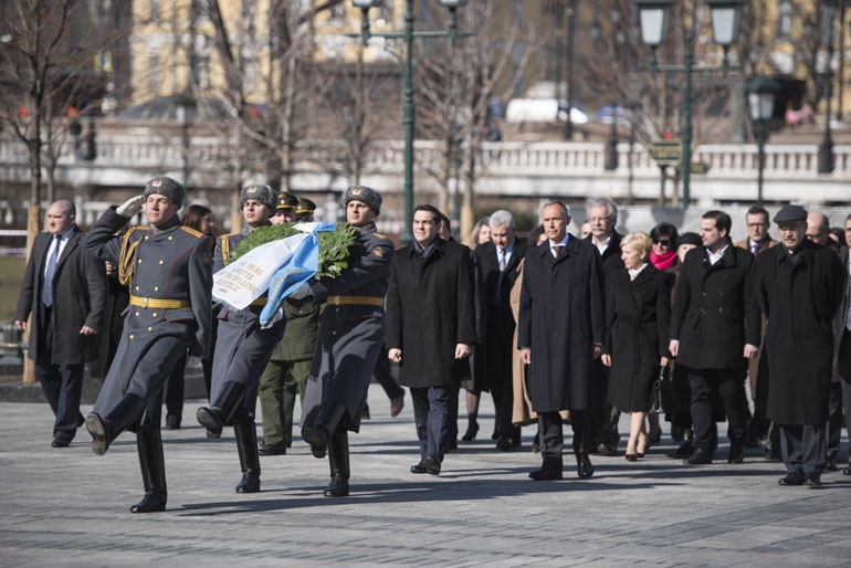 Κατάθεση στεφάνου στο μνημείο της Αιώνιας Φλόγας έκανε το πρωί ο πρωθυπουργός Αλέξης Τσίπρας στο πλαίσιο της επίσκεψής του στη Μόσχα, λίγο πριν από τη συνάντησή του με τον Βλαντιμίρ Πούτιν.
