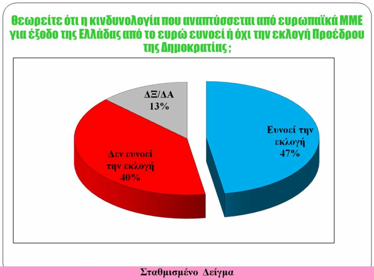 Πρόκειται για μια πρώτη ανίχνευση της τάσης του εκλογικού σώματος, λίγες ώρες πριν από την κρίσιμη ψηφοφορία της 17ης Δεκέμβρη στη Βουλή για τον Πρόεδρο της Δημοκρατίας.