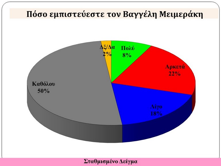 Επίσης, οι πολίτες κατέθεσαν την άποψή τους σχετικά με την αξιοπιστία του πρώην πρωθυπουργού και του προέδρου της ΝΔ. Το μεγαλύτερο και συντριπτικό ποσοστό θεωρεί αναξιόπιστους τόσο τον Αλέξη Τσίπρα, όσο και τον Βαγγέλη Μεϊμαράκη.