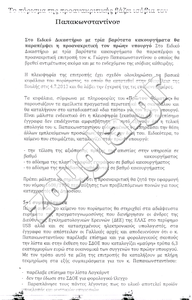 Εννιά σελίδες είναι το υπόμνημα που έστειλε στην προανακριτική επιτροπή ο πρώην υπουργός Οικονομικών Γιώργος Παπακωνσταντίνου.