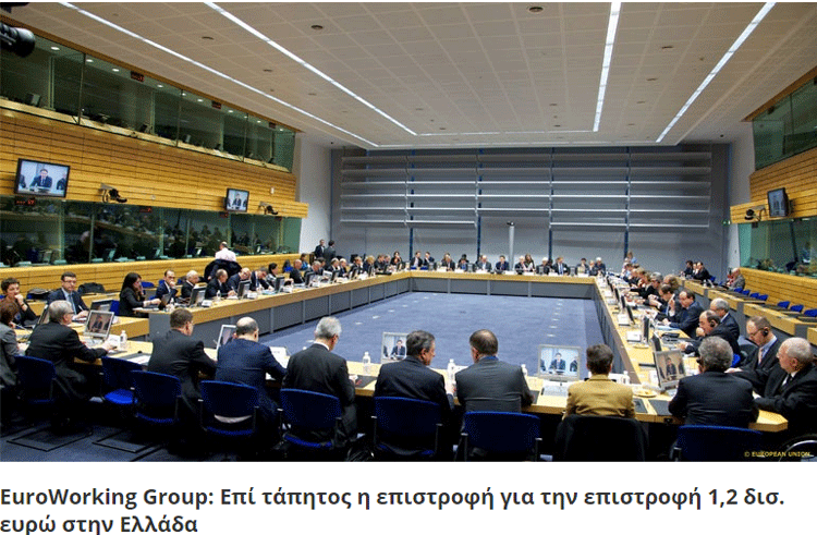 Σε καλό κλίμα αλλά χωρίς ουσιαστικές αποφάσεις διεξήχθη η σημερινή συνεδρίαση του Euroworking Group. Στο τραπέζι αναμενόταν να τεθεί προς συζήτηση ένα μείζονος σημασίας ζήτημα για την οικονομία της Ελλάδας, δηλαδή η επιστροφή του 1,2 δις ευρώ από τον Ευρωπαϊκό Μηχανισμό Χρηματοπιστωτικής Σταθερότητας.