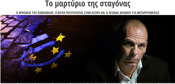 Ενδιαφέρον είναι το δημοσίευμα του Blοomberg για το «παρασκήνιο» του Eurogroup και τη συζήτηση του προέδρου της Ευρωπαϊκής Κεντρικής Τράπεζας Μάριο Ντράγκι με τον Έλληνα ΥΠΟΙΚ Γιάνη ΒαρουφάκηΤα περισσότερα έντυπα και ηλεκτρονικά μέσα κάνουν λόγο για μια «κρίσιμη καμπή» στην οποία βρίσκεται η Ελλάδα, τονίζοντας πως οι σχέσεις της χώρας με τους Ευρωπαίους πιστωτές δεν είναι ιδανικές -μάλλον το αντίθετο.