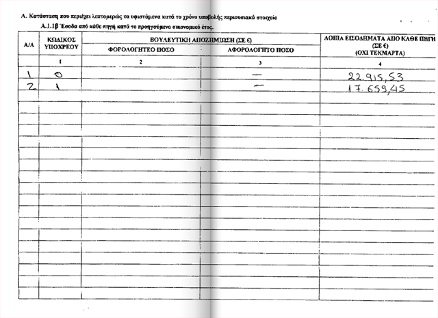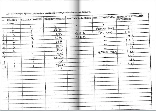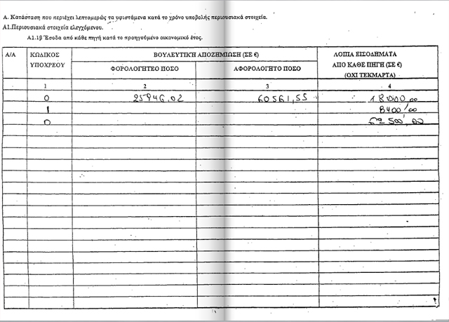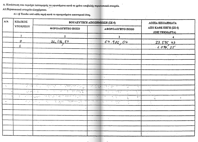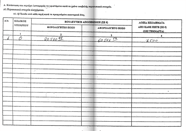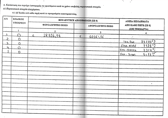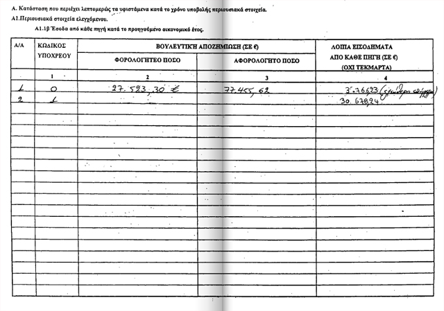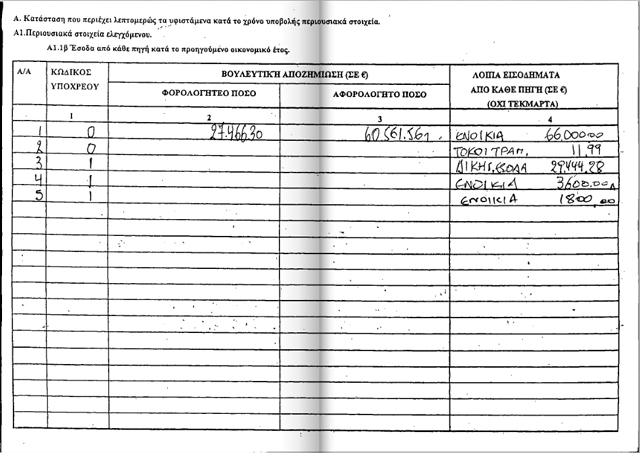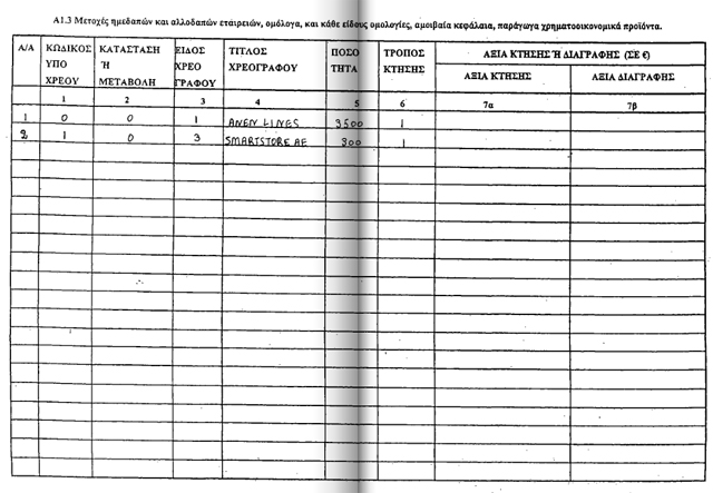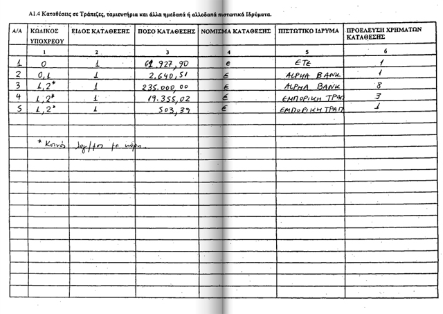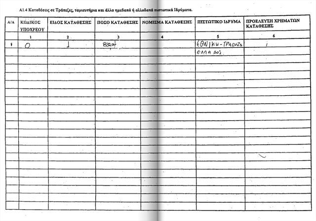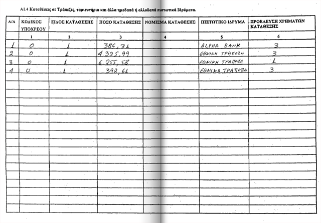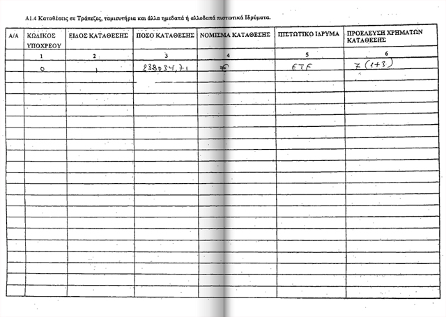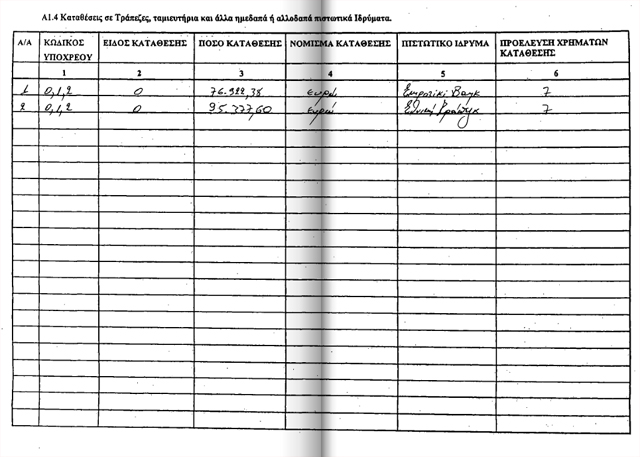 καταθέσεις 11.238 ευρώ και μετοχές που ανέρχονται στο ποσό των 55.000 ευρώ.