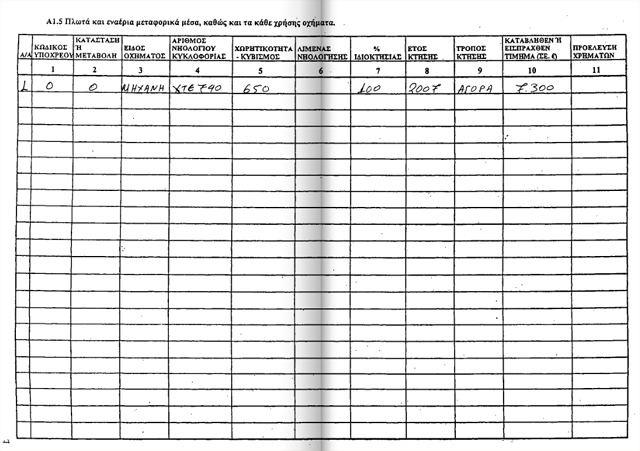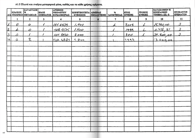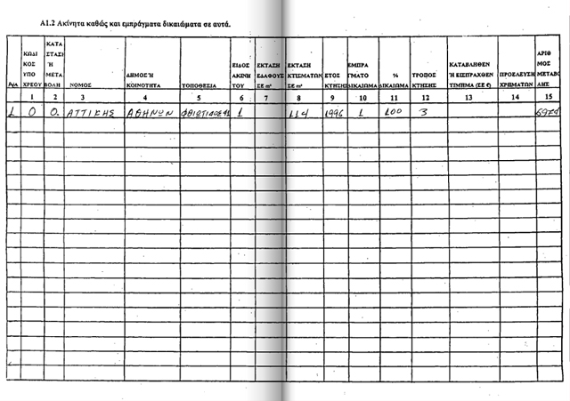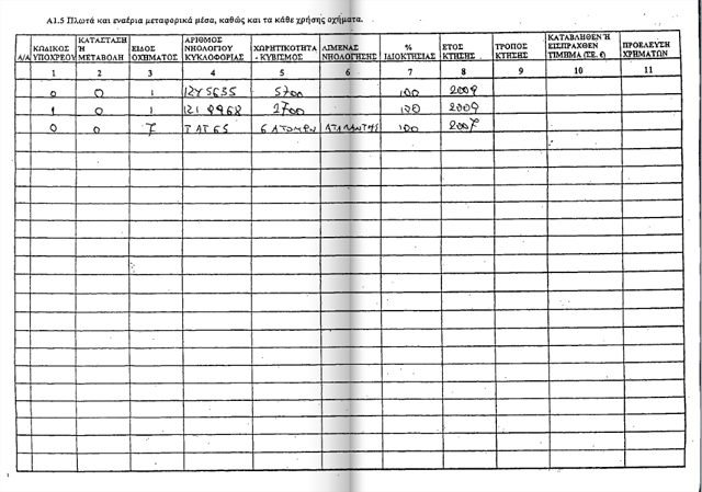 Κατέχει ακίνητα, σκάφος και τρία αυτοκίνητα.
