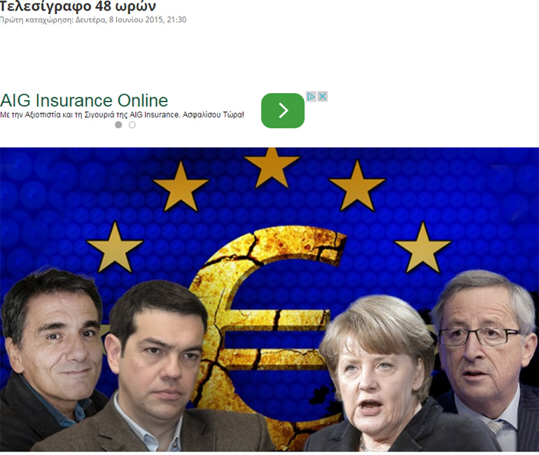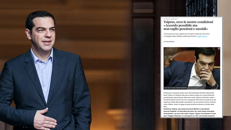 «Ένα ενδεχόμενο Grexit θα σήμαινε και την αρχή του τέλους για την Ευρωζώνη» τονίζει ο πρωθυπουργός Αλέξης Τσίπρας σε συνέντευξή του στην ιταλική εφημερίδα «Corriere della Sera».