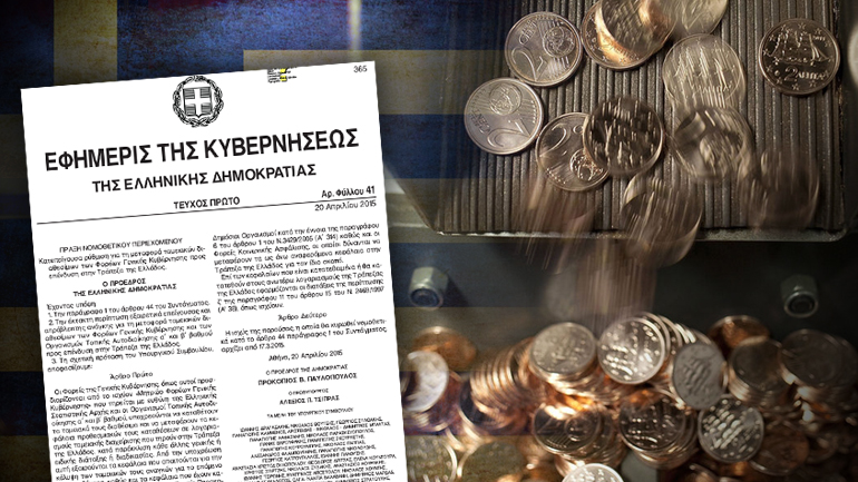Με Πράξη Νομοθετικού Περιεχομένου, που υπογράφουν ο πρωθυπουργός και ο Πρόεδρος της Δημοκρατίας, Προκόπης Παυλόπουλος, γίνεται υποχρεωτική η μεταφορά ταμειακών διαθέσιμων των φορέων του Δημοσίου στον ειδικό λογαριασμό της Τράπεζας της Ελλάδος, ώστε να αντιμετωπιστεί η έλλειψη ρευστότητας και να καλυφθούν οι άμεσες υποχρεώσεις σε μισθούς και συντάξεις.