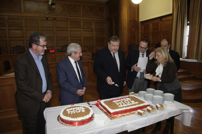 Στη σκιά των πολλαπλών ανακοινώσεων της «Κίνησης των 75» η οποία ζητεί τη διακοπή συνεργασίας ΝΔ – ΠΑΣΟΚ ο αντιπρόεδρος της κυβέρνησης, υπουργός Εξωτερικών και πρόεδρος του ΠΑΣΟΚ έκοψε το μεσημέρι της Τρίτης την πρωτοχρονιάτικη πίτα της Κοινοβουλευτικής Ομάδας του κόμματος, στη Βουλή.