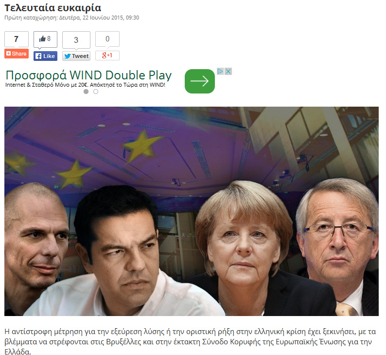 Στην παραπάνω γραμμή, η καγκελάριος της Γερμανίας Άνγκελα Μέρκελ επεσήμανε ότι οι ηγέτες της Ευρωζώνης που συναντώνται στις Βρυξέλλες δεν αναμένεται να είναι σε θέση να λάβουν επίσημη απόφαση για το κατά πόσο θα προσφέρουν βοήθεια στην Ελλάδα, προσθέτοντας ότι υπάρχει ακόμα χρόνος αυτήν την εβδομάδα για να οριστικοποιηθεί μια συμφωνία.