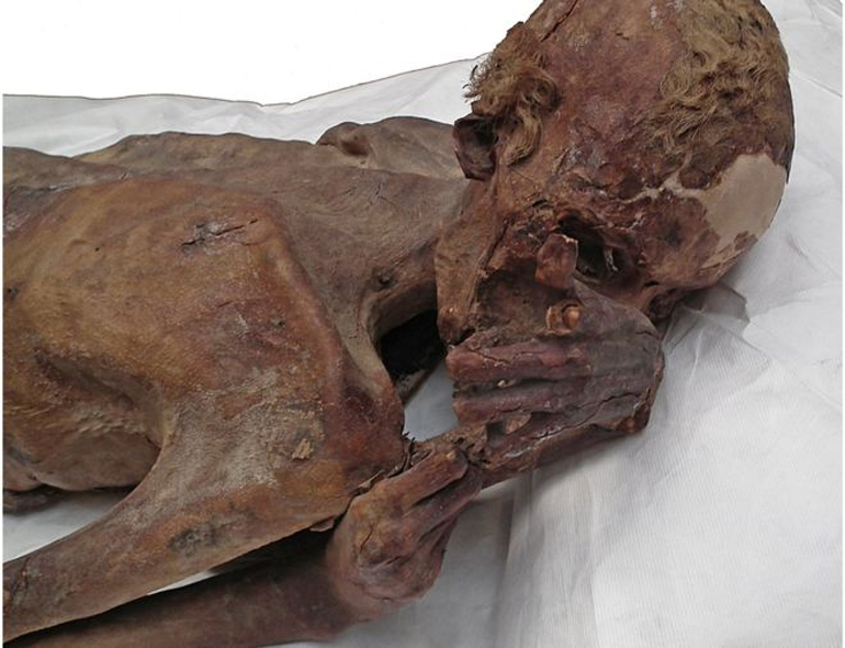 Η ανδρική μούμια είναι μία από τις καλύτερα διατηρημένες στον κόσμο και εκτίθεται εδώ και σχεδόν 100 χρόνια, από τότε που ανακαλύφθηκε. Παρόλα αυτά, μόλις τώρα έγινε αντιληπτό ότι κάποιες σκούρες μουντζούρες, τις οποίες έχει στο πάνω μέρος του δεξιού μπράτσου, είναι τατουάζ ενός προβάτου και ενός ταύρου με μακριά ουρά. Το 2012 οι επιστήμονες είχαν καταλήξει στο συμπέρασμα ότι ο άνδρας είχε δολοφονηθεί σε ηλικία 18 έως 21 ετών, μαχαιρωμένος από πίσω.