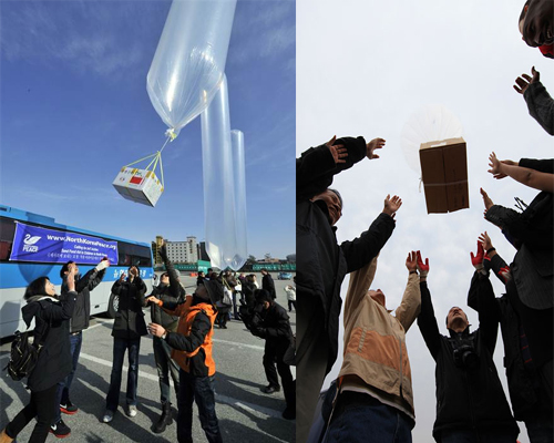Τέλος δεν έχουν οι παραδοσιακές πλέον διαμαρτυρίες με μπαλόνια Βορειοκορεατών οι οποίοι έχουν αυτομολήσει στη Ν. Κορέα. Μετά την αποστολή φυλλαδίων με μηνύματα κατά του καθεστώτος και την αποστολή σοκολατόπιτων λίγες ημέρες πριν τον εορτασμό του νέου σεληνιακού έτους, ήρθε η σειρά για τις… κάλτσες!