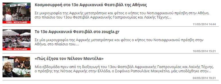 Οι Πρεσβείες και τα Επίτιμα Προξενεία των Αφρικανικών χωρών που είναι διαπιστευμένα στην Ελλάδα, σε συνεργασία με τοπικές κοινότητες, σας προσκαλούν στο «14ο Φεστιβάλ Αφρικανικής Γαστρονομίας και Λαϊκής Τέχνης» που θα πραγματοποιηθεί στις 23 και 24 Μαΐου 2015, στη Σχολή Μωραΐτη στο Ψυχικό (Αγίου Δημητρίου & Παναναστασίου, 15452, Ψυχικό).