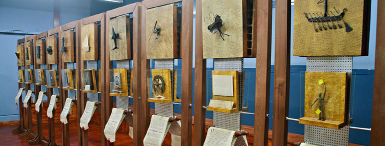 (H απεικόνιση της ιστορίας της Γραφής, όπως την είδε ο Αντ. Παπαντωνόπουλος και εκτίθεται στο Μουσείο Τυπογραφίας).