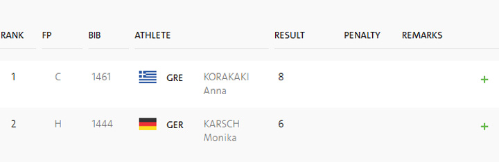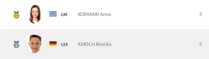 Στον τελικό η Κορακάκη, που κατάγεται από το Δοξάτο Δράμας επιβλήθηκε της Γερμανίδας Μόνικα Χαρς με 8-6 και στη συνέχεια έπεσε στην αγκαλιά του πατέρα και προπονητή της, Τάσου Κορακάκη, που είναι πρώην αστυνομικός ξεσπώντας σε δάκρυα χαράς.