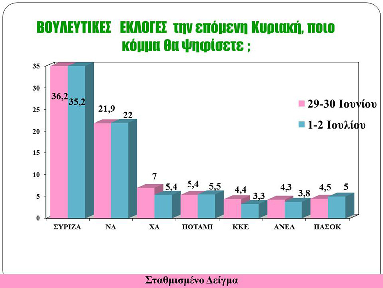 Δείτε τον πίνακα με την πρόθεση ψήφου (ποσοστά κομμάτων στις δύο ψηφοφορίες, 29-30 Ιουνίου/1-2 Ιουλίου)