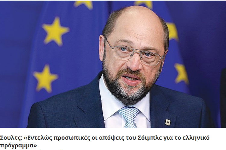 Κύκλοι προσκείμενοι στον Γερμανό πρόεδρο της Ευρωβουλής αποκάλυψαν ότι στους κόλπους του SPD οι δηλώσεις Σόιμπλε έχουν προκαλέσει σφοδρή ενόχληση και ότι τόσο ο αντικαγκελάριος Γκάμπριελ όσο και ο Μάρτιν Σουλτς τάσσονται σαφώς υπέρ της άμεσης επικύρωσης της συμφωνίας.