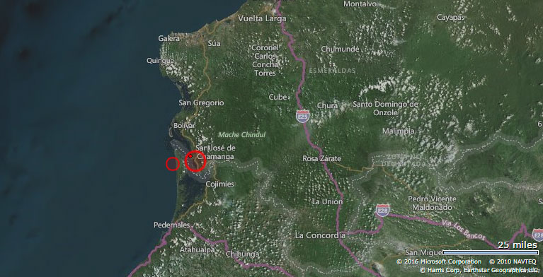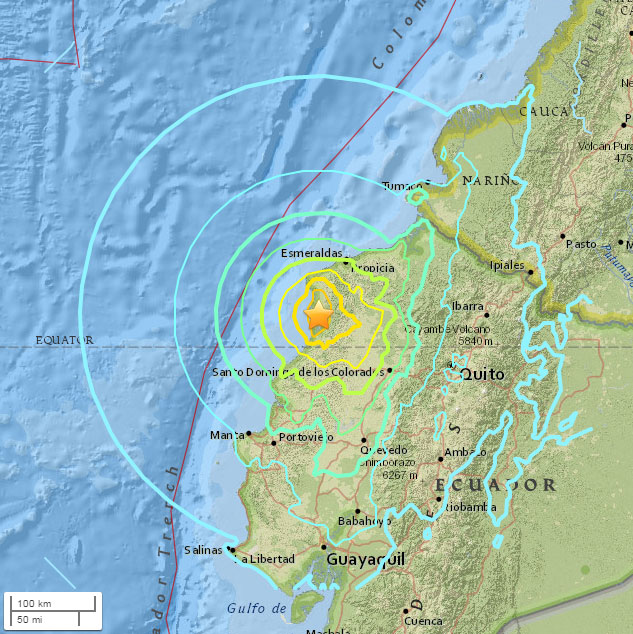 Ισχυρή σεισμική δόνηση μεγέθους 7,8 βαθμών της κλίμακας Ρίχτερ συνέβη στις βόρειες ακτές του Ισημερινού στη Νότια Αμερική στις 2:58 ώρα Ελλάδας και 6:58 τοπική.
