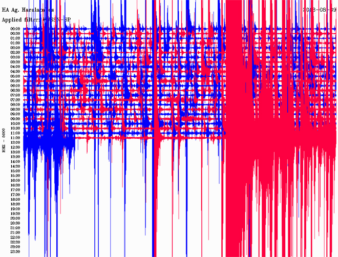 Δείτε πώς κατέγραψε τη δόνηση ο σεισμογράφος του Γεωδυναμικού Ινστιτούτου του Εθνικού Αστεροσκοπείου Αθηνών που είναι εγκατεστημένος στον Άγιο Χαράλαμπο.